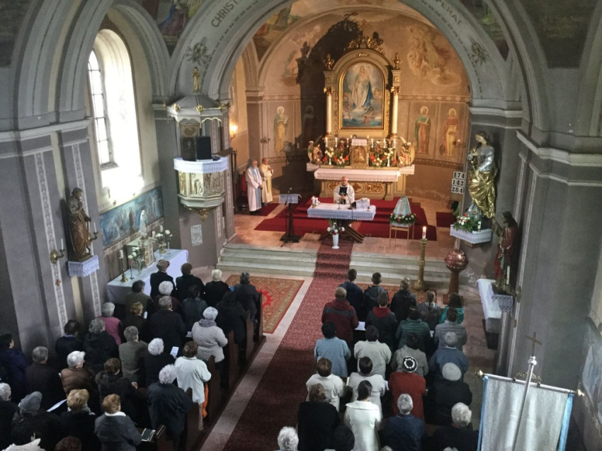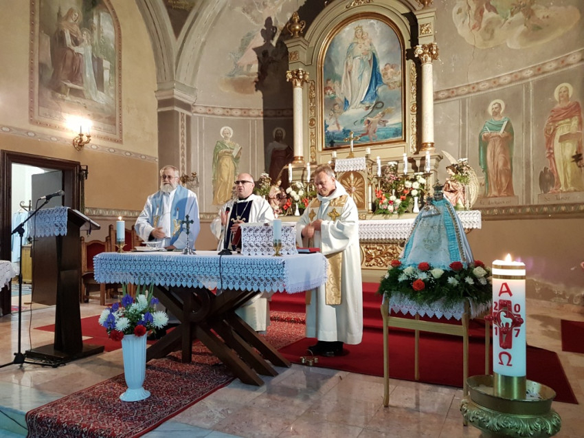 A szentmisét Dékány Sixtus volt zirci apát celebrálta Horváth Lajos bakonynánai plébánossal és Imrefi Mór ciszterci atyával. Dékány Sixtus homíliájában kiemelte, hogy Szent István királyunk a Szűzanya oltalmába helyezte a magyar nemzetet, és ezt nem kétségbeesésében tette, hanem hitből fakadó meggyőződéséből választotta ezt az utat népe számára. „A mi feladatunk ezen az ünnepen, hogy ezt a döntést saját magunkban, életünkben megerősítsük” – hangsúlyozta Dékány Sixtus.