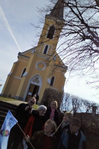 Első állomásunk, a kora reggeli órában Kőszegfalva volt. Különösen az ágyhoz kötött betegeket ajánlottuk itt Isten oltalmába. A helyiek egészen a falu széléig kísértek bennünket, majd az erős böjti szelek hátán az Abért-tó partján egy órás gyaloglással értünk második állomásunkra, a kőszegdoroszlói Szent Márton-templomhoz. A körülbelül tizenöt katolikus családból álló közösség temploma felújításra vár. Így a „természet templomában” egy szélvédett völgyben imádkoztunk, hogy felépüljön, megújuljon a templom.