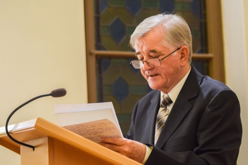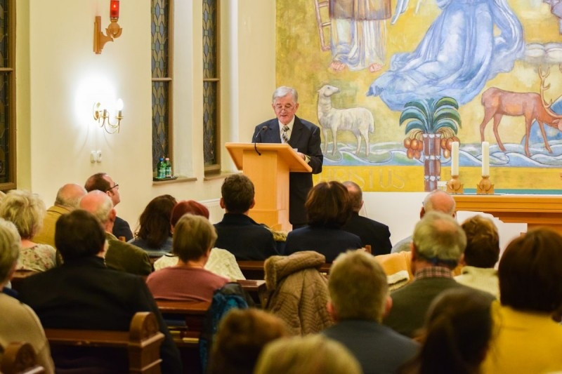 Előadása elején elmondta, költemények egész sora bizonyítja, hogy a mélyen hívő református Arany számára természetes volt, hogy tanúságtételét a nyilvánosság előtt is megtegye. Ő volt az a költő, aki ki merte mondani: „A LÉLEK ÉL: találkozunk!” (Juliska sírkövére). Fiamnak című versében pedig így fogalmaz: „Kis kacsóid összetéve szépen, / Imádkozzál, édes gyermekem.” Nem csupán maradandót alkotott, hanem szellemi, lelki értéket teremtett poézisével. Szerényen élt és szerényen gondolkodott magáról is. Hitvallását azokkal a szavakkal is kifejezhetjük, amelyeket Toldi szájába adott: „De nem köszönöm azt magam erejének: / Köszönöm az Isten gazdag kegyelmének”.