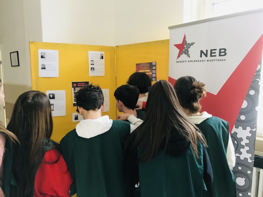 Az iskola folyosóján elhelyezett paravánon a jövő hét közepéig az emléknaphoz köthető kiállítást tekinthetnek meg a diákok. Ez részben a kommunizmus papi, szerzetesi vértanú áldozatainak állít emléket, az olyan ismertebb egyházi személyek mint Apor Vilmos, Brenner János, Kiss Szaléz, Meszlényi Zoltán, Romzsa Tódor és Sándor István mellett többek között Kenyeres Lajos, Kriszten Rafael vagy Szekuli Pál mártíromsága körülményeinek ismertetésével.