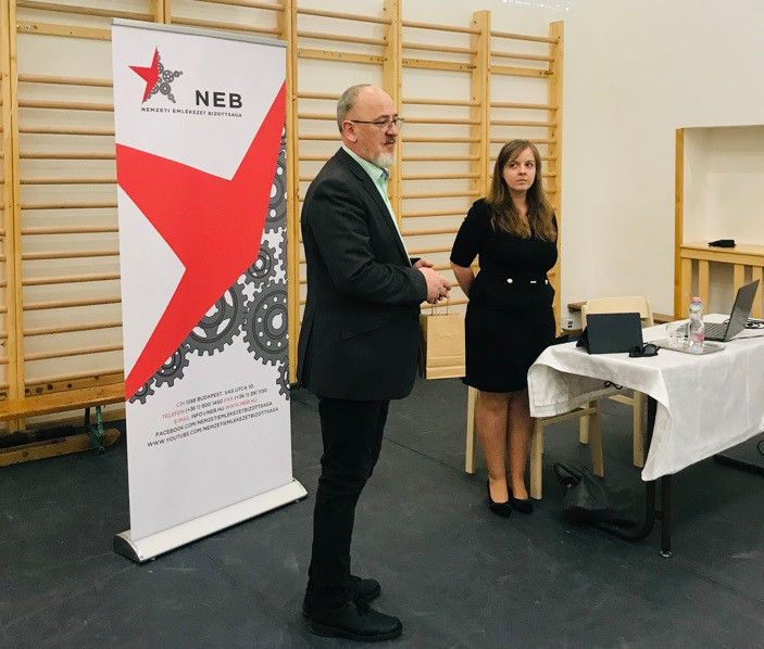 A meghívott előadó, Melkovicsné Madarász Anita, a Nemzeti Emlékezet Bizottsága (NEB) tudományos főmunkatársa áttekintést adott a diákoknak a kommunizmus ideológiájának létrejöttéről, majd a II. világháborút követő időszakhoz érve bemutatta a Rákosi-korszak propagandatevékenységét, beleértve a Joszif Visszarionovics Sztálin „legjobb magyar tanítványát”, Rákosi Mátyást övező személyi kultuszt is.