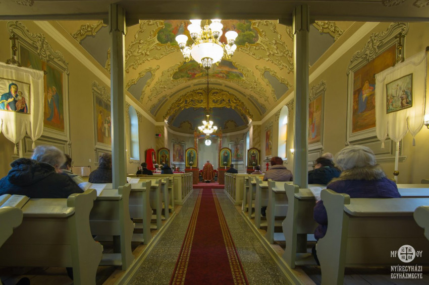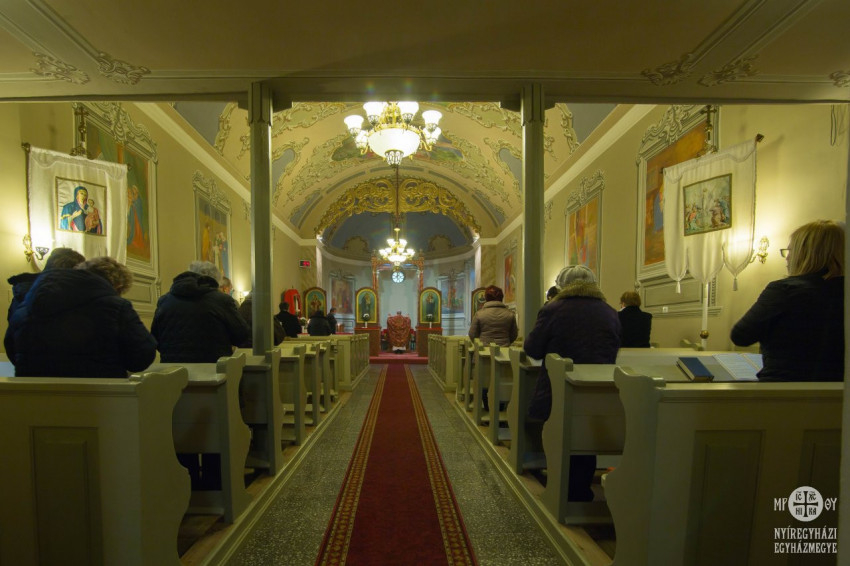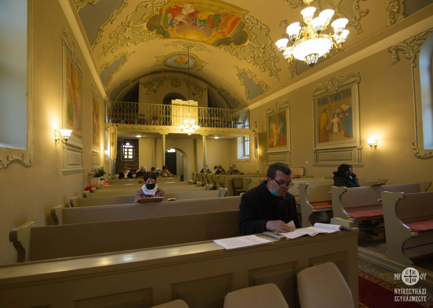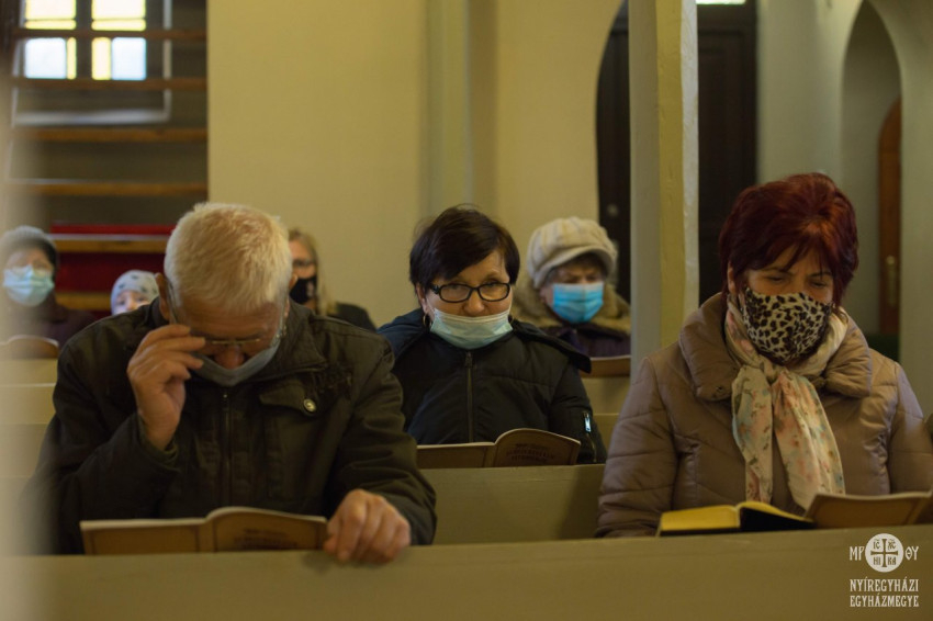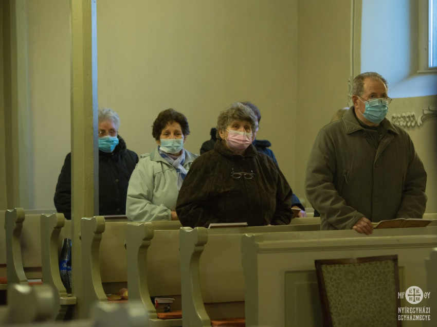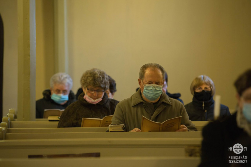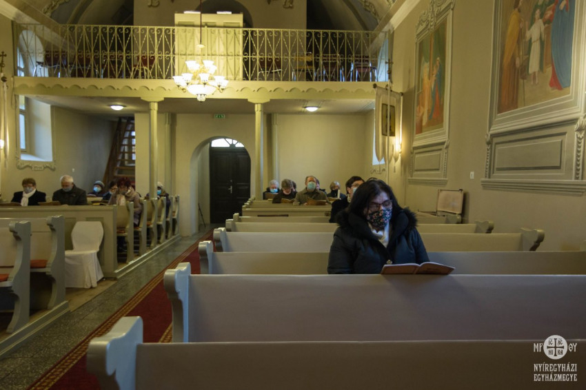 A kései barokk stílusú, egyhajós templom tágas terében imádkoztak együtt a hívek Szemán László parókussal a nagyböjti szertartáson március 3-án.