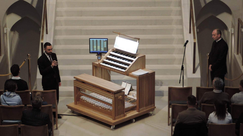 A négymanuálos liturgikus és koncertorgonába beépítették az 1908-as Rieger-sípsorok közül azokat, amelyek restaurálhatók voltak, illetve eredeti állapotban fennmaradtak és jó minőségűek, megfelelő hangzásúak. Helyreállították és felhasználták az eredeti orgonaszekrényt is, amely kiemelkedő értéket képvisel, s melyhez anyagban, színben és mintázatban a bővítmények is igazodnak. Az orgona 36 tényleges regisztert tartalmaz, amelyeket úgynevezett transzmissziókkal, azaz az egyes sípsorok több regiszterben történő felhasználásával 50 regiszterre bővítettek. A hangszer mobil játszóasztal segítségével a főhajóból is megszólaltatható.