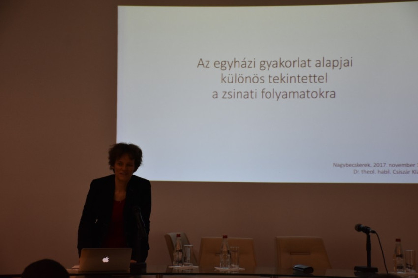 Csiszár Klára az egyházi gyakorlat alapjairól beszélt, különös tekintettel a zsinati folyamatokra. Előadásának alapjául a leprás meggyógyításának történetét (vö. Mt 8,1–4) vette. Hangsúlyozta, az egyházmegyei zsinat kockázatokkal teli kegyelmi idő, „egy csomó mellékhatással”: megpezsdíti az életet, beszélgetéseket kezdeményez egyházi dolgokról, nyitás történik a világiak felé, az emberek leülnek beszélgetni, lelkesednek.