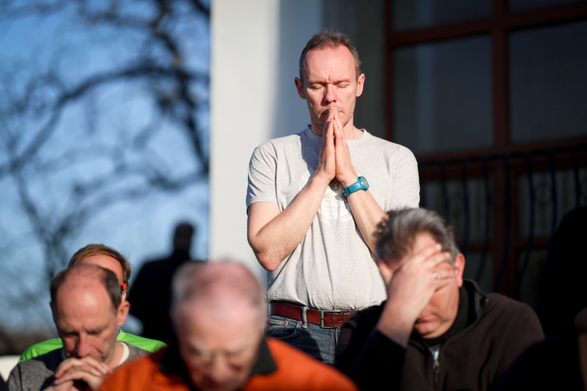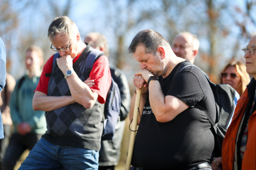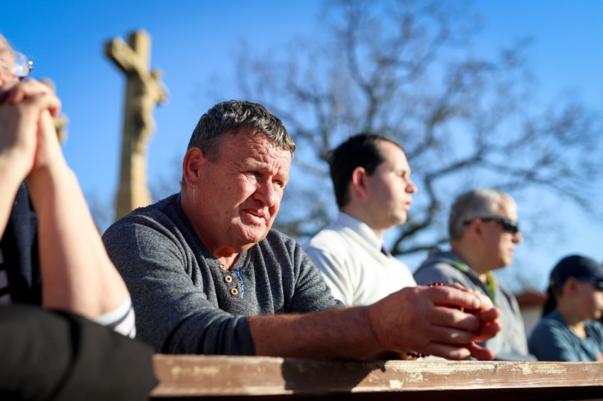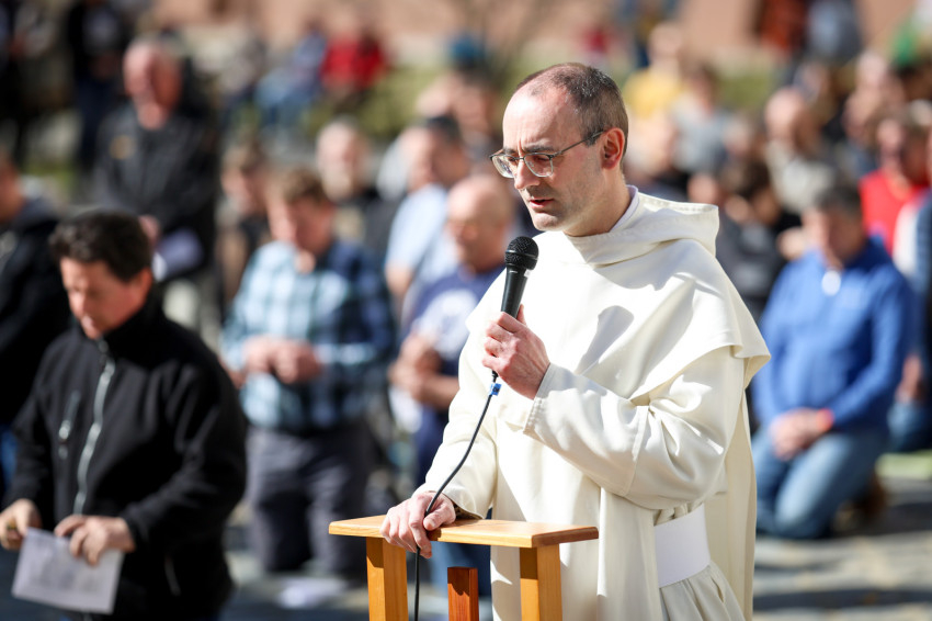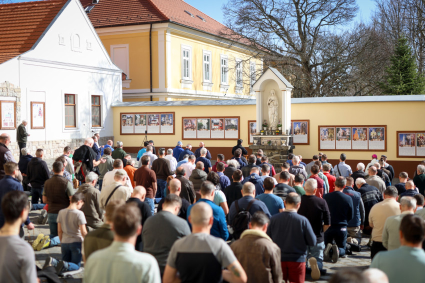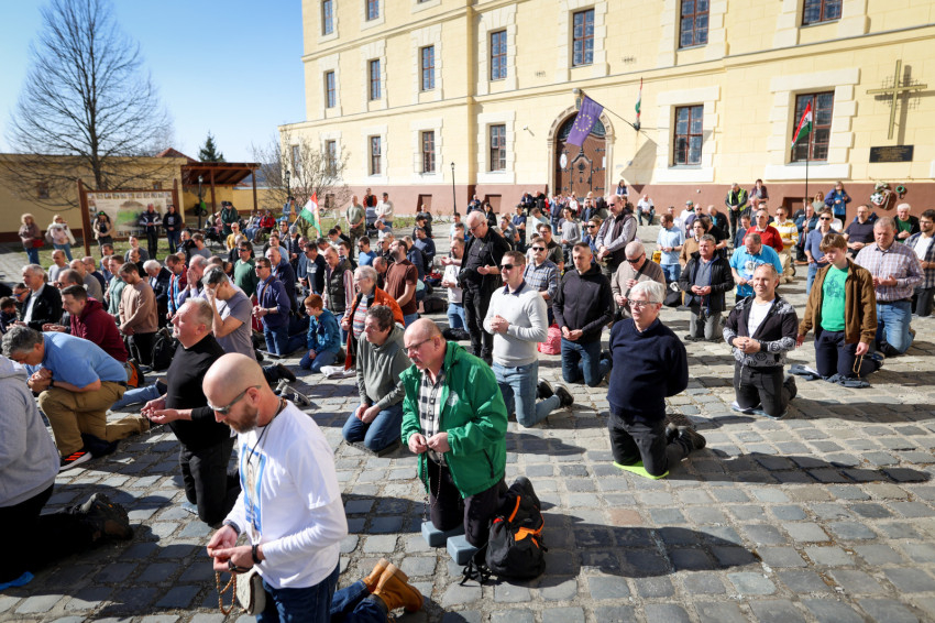 Márianosztrán már hagyománnyá vált, hogy minden hónap első szombatján férfiak gyűlnek össze a bazilika előtt, hogy térdepelve, közösen imádkozzák a rózsafüzért. Az alázatos, mégis határozott tanúságtétel tavaly májusban vette kezdetét, és azóta is töretlen erővel hívják közös bűnbánatra és közbenjárásra a családfőket, fiatalokat és idősebbeket egyaránt. Ezúttal közel kétszáz férfi együttes imája és éneke töltötte be a Pálosok terét.