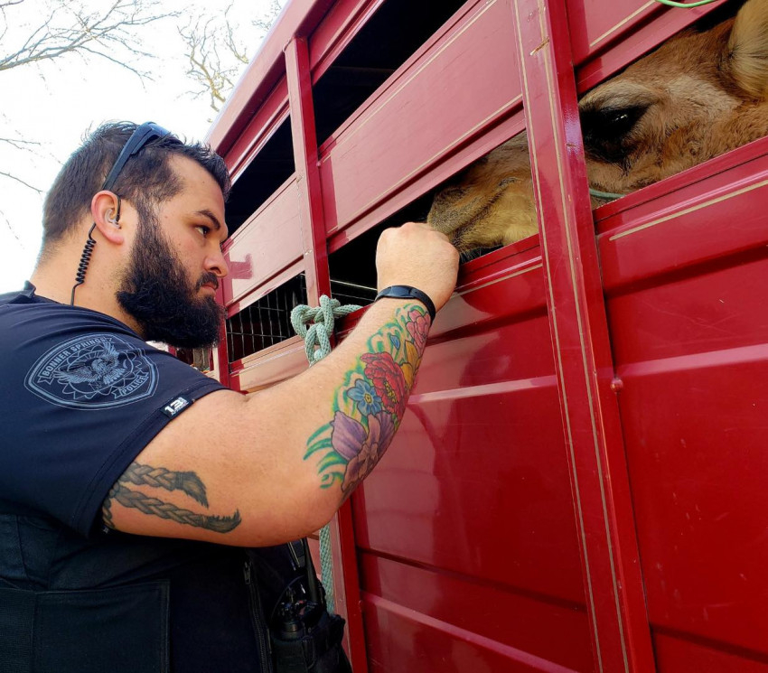 Az állat egy országos mezőgazdasági kiállító és oktatási központ (National Agricultural Center and Hall of Fame) betlehemének volt a sztárja. A hatóságok nem értik, hogyan szabadult ki, mindenesetre a Bonner Springsi Rendőrőrs megosztott róla pár fotót a Facebook-oldalán, miután sikerült egy lasszóval befogniuk, és biztonságban visszavitték tulajdonosaihoz; valószínűleg azóta visszatért a betlehemben végzett fontos munkájához.