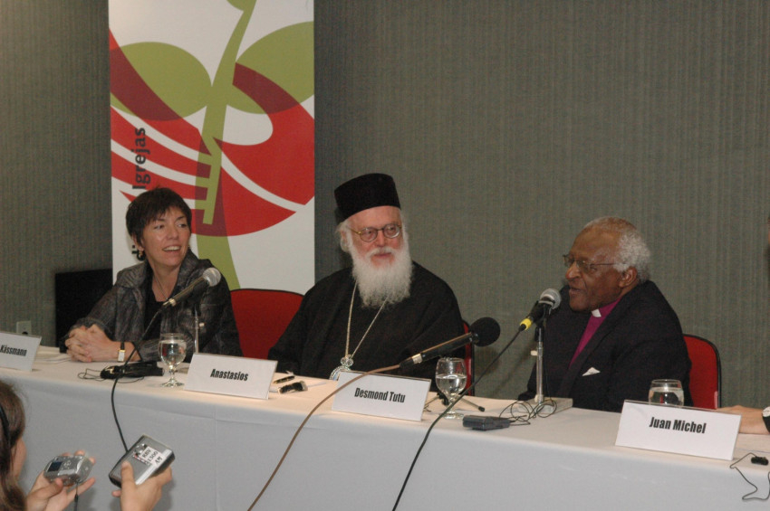Anasztáz érsek és Desmond Tutu. Fotó: World Council of Churches