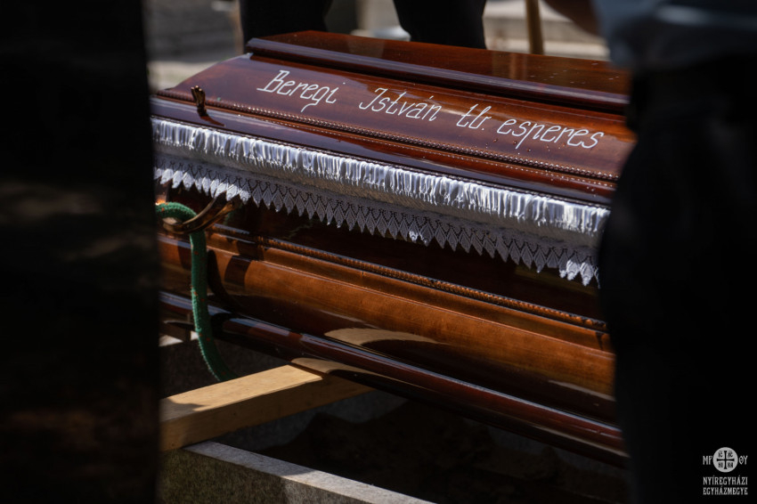 A paptestvérek, akik közül sokan elkísérték utolsó útjára Beregi Istvánt, valamint a püspökök hosszú menetben indultak el a temető felé, ahol Szocska Ábel lepecsételte a sírt Krisztus második eljöveteléig, Orosz Atanáz püspök pedig szenteltvízzel hintette meg a sírhantot.