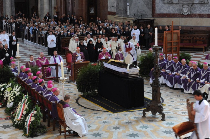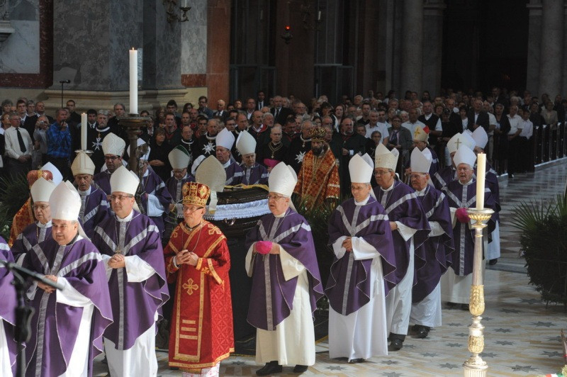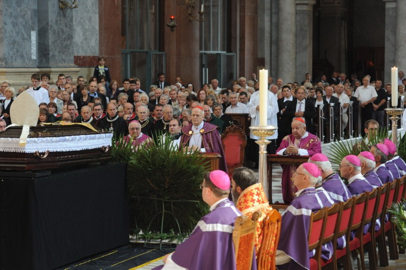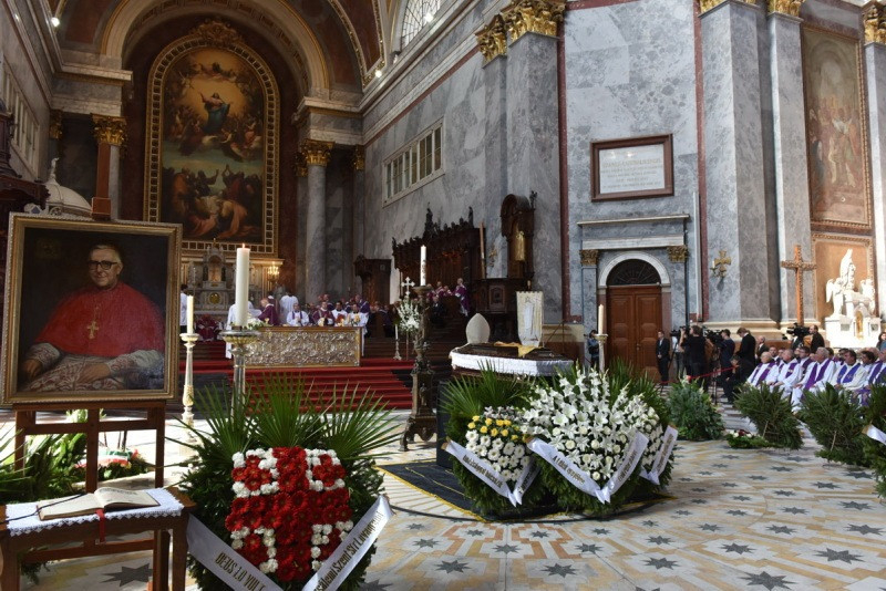 A gyászszertartást megelőzően a dicsőséges rózsafüzért imádkozták el az augusztus 17-én, hétfőn elhunyt főpásztor lelki üdvéért. A végakaratának megfelelően elmondott liturgia Paskai bíborosnak – az esztergomi bazilika főoltára előtt felállított – koporsója előtt zajlott a jelenlévő püspökök vezetésével.