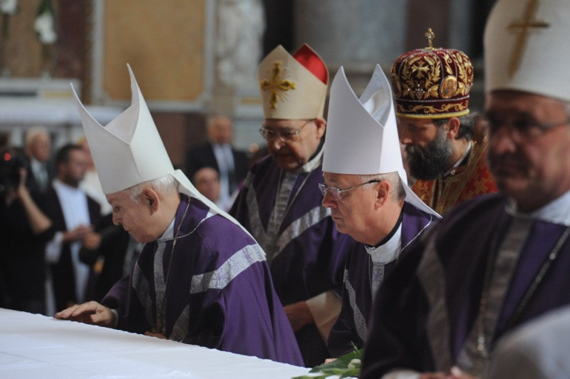 A szertartáson koncelebrált Stanisław Dziwisz bíboros, krakkói érsek és Josip Bozanić zágrábi érsek megbízottja, Ivan Saska segédpüspök, Alberto Bottari de Castello apostoli nuncius, a Magyar Katolikus Püspöki Konferencia tagjai és számos Kárpát-medencéből érkezett püspök, valamint mintegy háromszáz paptestvér. A szentmisén részt vett Orbán Viktor miniszterelnök, Semjén Zsolt miniszterelnök-helyettes, az állami, társadalmi és kulturális élet képviselői, a diplomáciai testületek tagjai, a testvéregyházak képviselői.