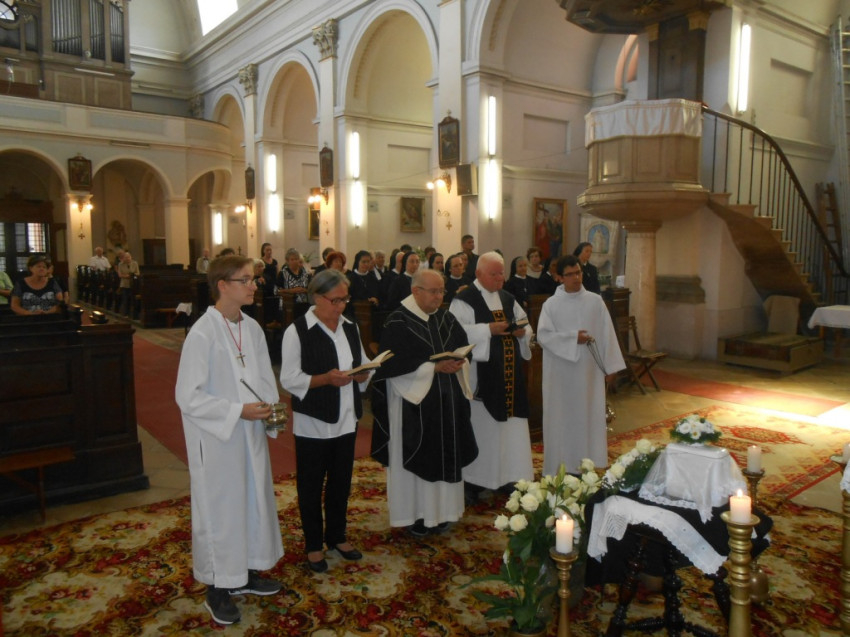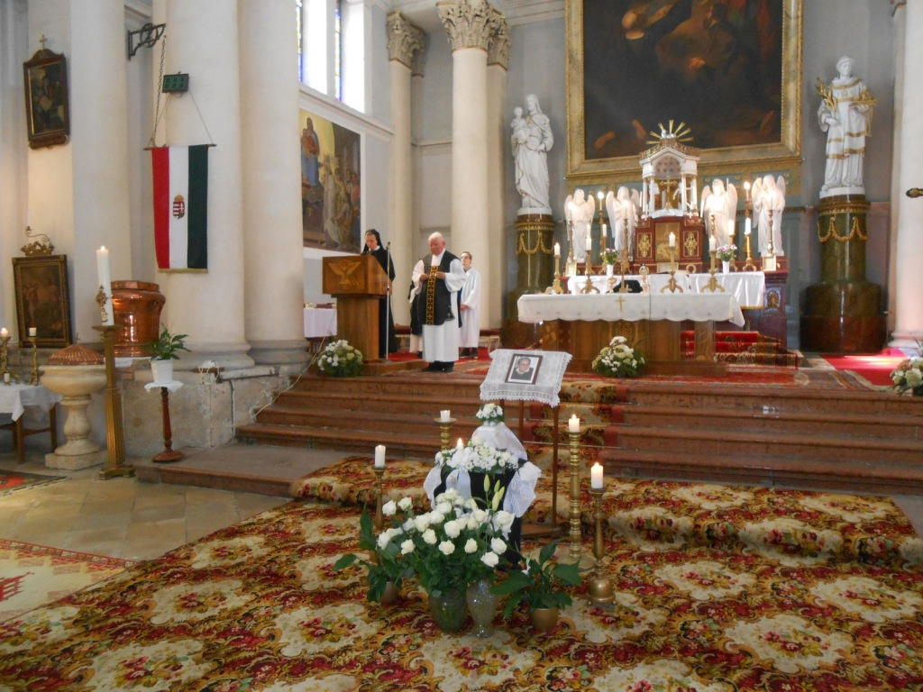 A 14 órakor kezdődő gyászmisét Bogisich Ferenc OSSM atya, a szervita világi rend nemzeti asszisztense mutatta be Zsebedics József újvárosi plébános koncelebrálásával, a gyászoló rokonság a magyarországi Szervita Nővérek a Fájdalmas Anya Szolgálói, a szervita világi rend és az összegyűlt hívek jelenlétében.