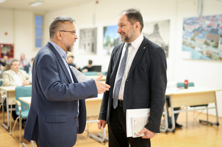 Bódis László, a Kulturális és Innovációs Minisztérium innovációért felelős helyettes államtitkára a megjelenteket köszöntve hangsúlyozta, az MI kettős arcú technológia. A fejlesztési célokat nem lehet nélküle elérni, ugyanakkor felforgató technológia is, hiszen komplett iparágakat alakít át. A mesterséges intelligenciáról gondolkodva arra kell rájönnünk, hogyan lehet úgy alkalmazni, hogy ne állítsa rossz vágányra a társadalmat. Bódis László köszöntője végén a projekt elindítása alkalmából egy MI által rajzolt emléktáblát adott át Kuminetz Géza rektornak.