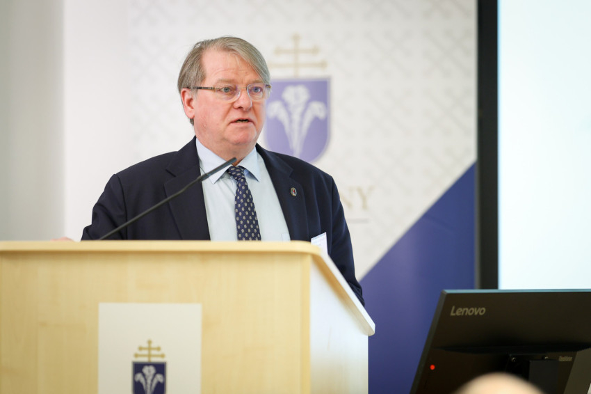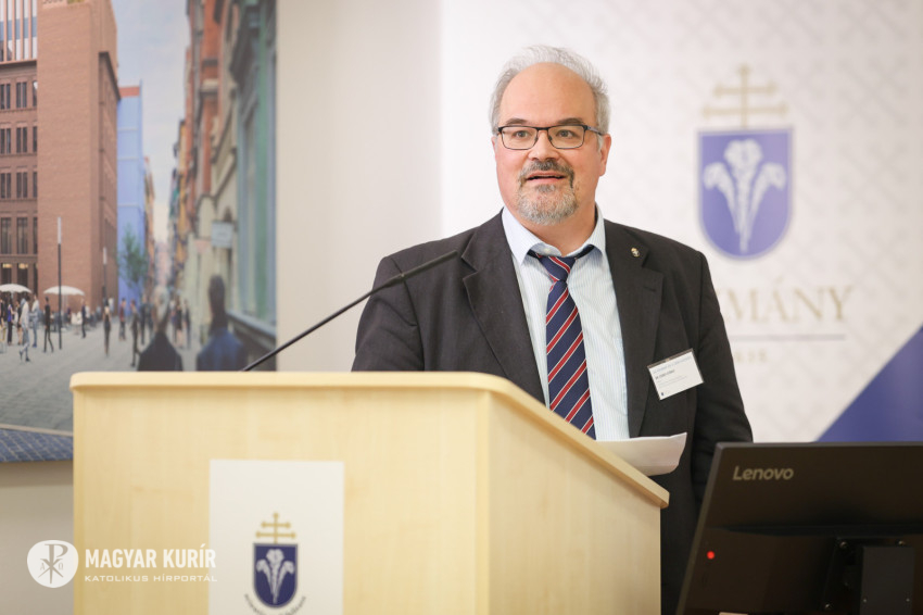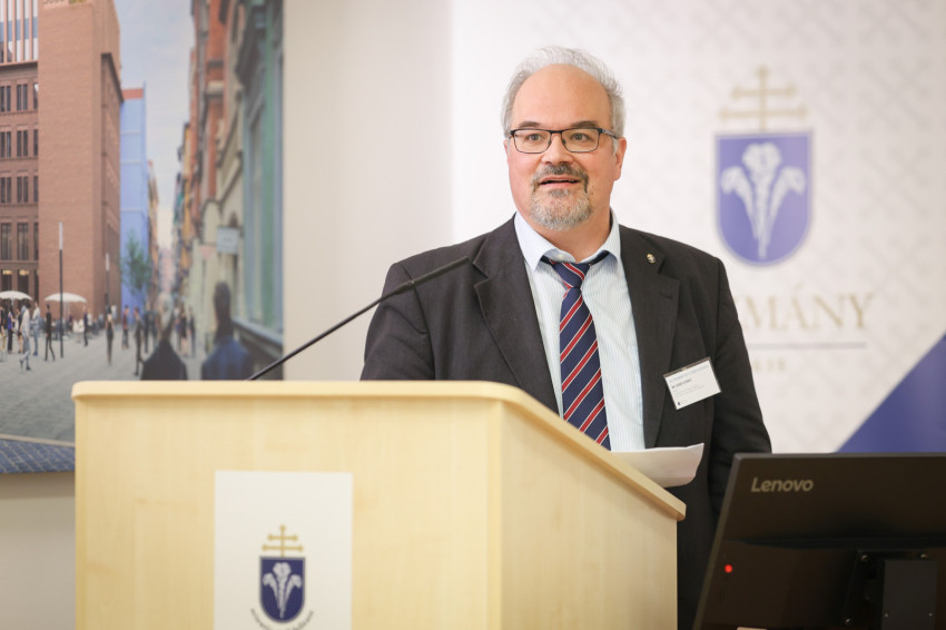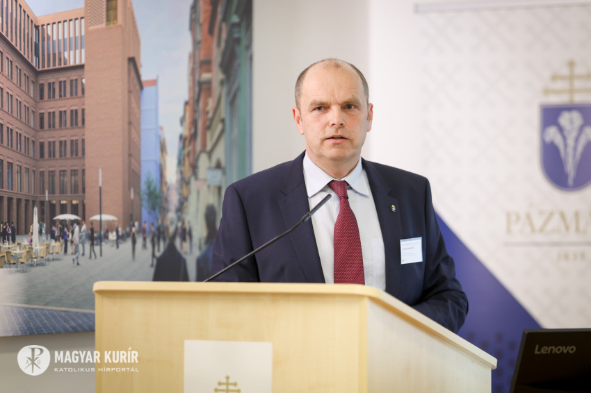 Kuminetz Géza, a PPKE rektora köszöntőjében rámutatott, az MI megalkotása kétségkívül az emberi intelligencia csúcsteljesítménye, de humánus működtetéséhez is magas szintű szakmai ismeretek kellenek. Ugyanakkor az is megfigyelhető, hogy ezt a technológiát e világ urai hatalmuk kiterjesztésére használják. Ezt Byung-Chul Han koreai-svájci kultúrteoretikus „globális információs rezsimnek” hívja. Az a modern társadalom, mely létrehozta, nem tűnik különösebben intelligensnek, hiszen rombolja a környezetet, az igazságtalanságokat pedig nem orvosolja. A valódi haladás – emelte ki a rektor – a helyesen értett emberi természet kibontakoztatása. Arról sem szabad megfeledkezni, hogy a tudományos felfedezések és találmányok adaptációs időt igényelnek.