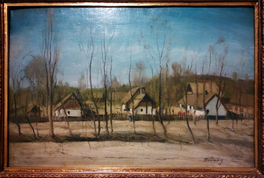 Erdős Péter Romos tanya című 1970-ben készült képe az alföldön élők sivár környezetét mutatja be, a kilátástalanság festői ábrázolása.