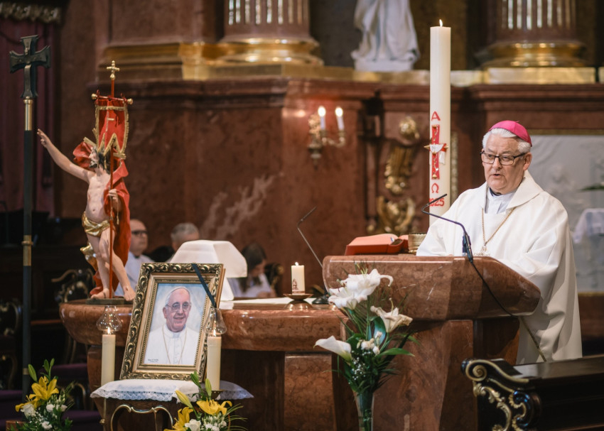 A főpásztor a hívekkel együtt imádkozott az elhunyt Szentatyáért, aki a remény pápájaként egész életét az Úr és Egyháza szolgálatába állította. Pápaságát a szegények melletti kiállás, a társadalmi igazságosság, a környezetvédelem, valamint az Egyház megújítására való törekvés jellemezte. Különösen is hangsúlyozta az irgalmasság, a párbeszéd, az egyszerűség fontosságát.