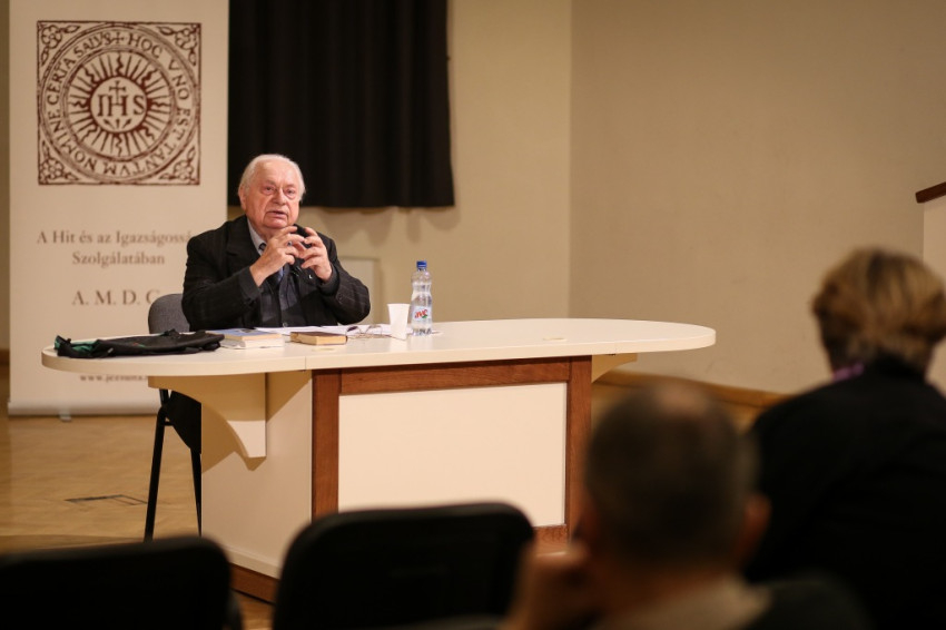 Szabó Ferenc felvázolta, hogy milyen válaszok születtek a 20. században az alapkérdésre: Istennel vagy Isten nélkül? A II. világháború vége felé Henri de Lubac jezsuita teológus megírta híres könyvét az ateista humanizmus drámájáról, rávilágítva a marxi, nietzschei radikális ateizmus gyökereire és következményeire. „Ha a Fényforrás eltűnik, a visszfény is elenyészik. (…) Ha az ember önmagát teszi meg saját istenének, egy ideig azt az illúziót táplálhatja, hogy felemelkedik és felszabadul. De ez a heves lelkesültség csak átmeneti. Valójában Istene alacsonyodik le, de vele együtt az ember is csakhamar a mélyben találja magát… Ha ’Isten meghalt’ (az emberi tudatban a tagadás révén), az ember – Isten képmása is – halott. A világot meg lehet szervezni Isten nélkül, Isten ellen, de az emberellenes társadalom, embertelen világ lesz” – idézett a könyvből az előadó.