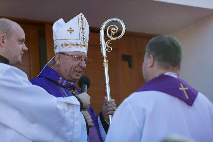 A szertartás kezdetén a templom bejárata előtt az épület kulcsát ünnepélyesen átadták Palánki Ferenc megyéspüspöknek, majd ő azt Pankotai József plébános gondjaira bízta, jelképezve az ismételt megbízást a templomhoz tartozó közösség vezetésére.