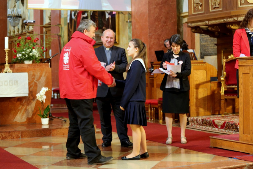 A Karitász jubileumi évében országos rajzpályázatot hirdettek Embertől emberig címmel, két kategóriában. A téma a következő volt: a szegénység milyen formáival találkoznak a gyerekek? Hogyan tudnának segíteni az arra rászorulókon? Az általános iskola alsó tagozatába, illetve a felső tagozatba járó diákok munkáit várták. Az Egri Főegyházmegyéből 306 rajz érkezett, közülük hárman országos díjazottak, többen pedig a főegyházmegye elismerését kapták. A legjobbak ezen alkalommal vették át az elismerő oklevelet Écsy Gábortól és Árvai Ferenc atyától, az egri karitász igazgatójától. Ládi Dorina Mezőcsátról az Egri Karitász Központ I. helyezését és országos I. helyezést nyert el rajzával. Polatli Ahunisa, az adácsi Szent Jakab Általános Iskola tanulója II. helyezését ért el. Makkai Krisztián, a sajóládi Fráter György Katolikus Általános Iskola tanulója III. helyezett lett. Farkas Ádám Recskről különdíjban részesült.