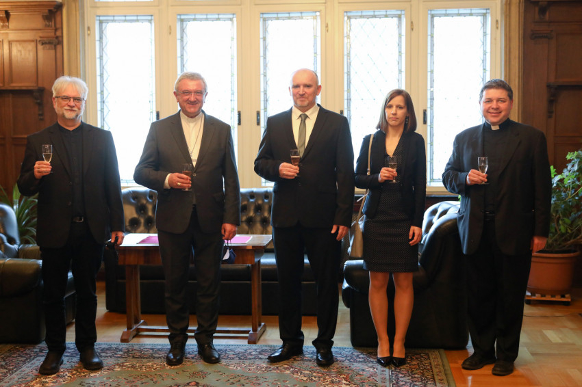 Mi, emberek mi másról is lehetnénk megkülönböztethetők, mint hogy kommunikálunk? A filozófus azt mondta: „Gondolkodom, tehát vagyok”, de akár azt is mondhatta volna: Beszélek, tehát ember vagyok – fogalmazott rövid beszédében Veres András. Az MKPK elnöke elmondta, éppen ezért az Egyház – azon túl, hogy az isteni kinyilatkoztatás kommunikációját végzi – szeretné azokat, akik ebből a kommunikációból jeles módon kiveszik a részüket, példaként állítani a többiek elé.