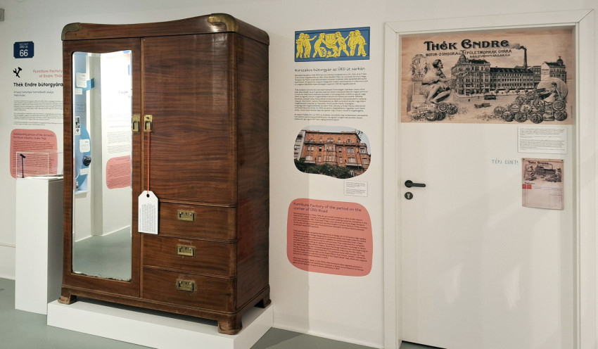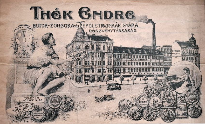 Ha elmegyünk kicsit andalogni, bámészkodni az Üllői útra, felfigyelhetünk egy szép nagy sarokházra. A falán emléktábla hirdeti, hogy ezen a telken állt Thék Endre egykori bútorgyára, a századfordulós bérház mögötti területen, az Üllői út 66/c szám alatt. A homlokzaton a gyár profiljára és az ott folyó szorgos munkára utaló jelenetek láthatók, a domborműveken kis gyerekfigurák fúrnak-faragnak, fűrészelnek, kalapálnak valamit. Thék itt alapította meg az ország első modern bútorüzemét. A millennium évében ez a bútorgyár majdnem háromszáz dolgozót foglalkoztatott. A tulajdonos elsőként ismerte fel a tervezőművészet fontosságát. Az egyedi megrendelések mellett vállalták kastélyok, paloták (például a Wenckheim-palota, a Tőzsdepalota) teljes felszerelését és berendezését is, a faburkolatokat és a nyílászárókat is beleértve. Az 1880-as évektől kezdve nagy állami megbízásokat is kaptak, többek között az Operaház és az Országház is az ügyfeleik között szerepelt.