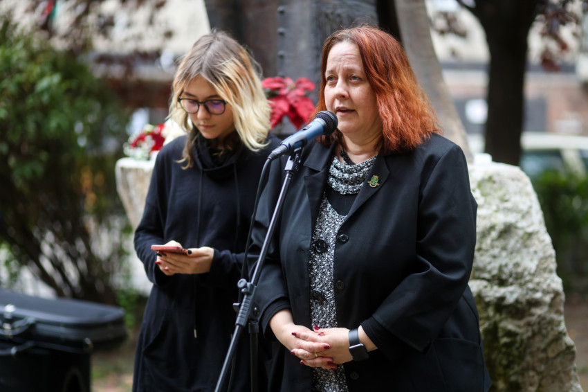 Az egybegyűlteket Szili-Darók Ildikó köszöntötte, aki többek között az egyházügyekért és nemzetiségekért felelős alpolgármester. Felelevenítette, hogyan ismerte meg ötévesen az őt nevelő nagyszülőktől '56 eseményeit. Kifejtette, mennyire fontos emlékeznünk mindarra, ami 1956-ben történt, azokra, akik a harcok idején haza tudtak térni, és akik nem. Mikor vagyunk igazán börtönben? Mi tudja életben tartani az embert, mekkora hit kell Istenben, az elvekben, az emberben, az életben? – tette fel átgondolásra a kérdéseket. Azt fogalmazta meg, hogy „számára az a börtön, ha nem tekintünk vissza, börtön úgy élni a mában, hogy nincs múltunk. Hogy kitörjünk ebből a börtönből, emlékezni kell azokra, akik maradtak, és akik elmentek. Addig vagyunk magyarok, amíg emlékezünk.” Ezt fejezte ki művészi erővel a bujdosódal: „Fordulj kedves lovam, napszentület felé, úgyse jövünk többet soha visszafelé. Messze földre megyek, elbujdosom innen, szép szülőhazámat nem látom meg többet.”