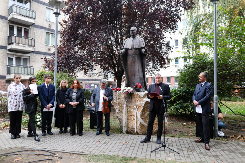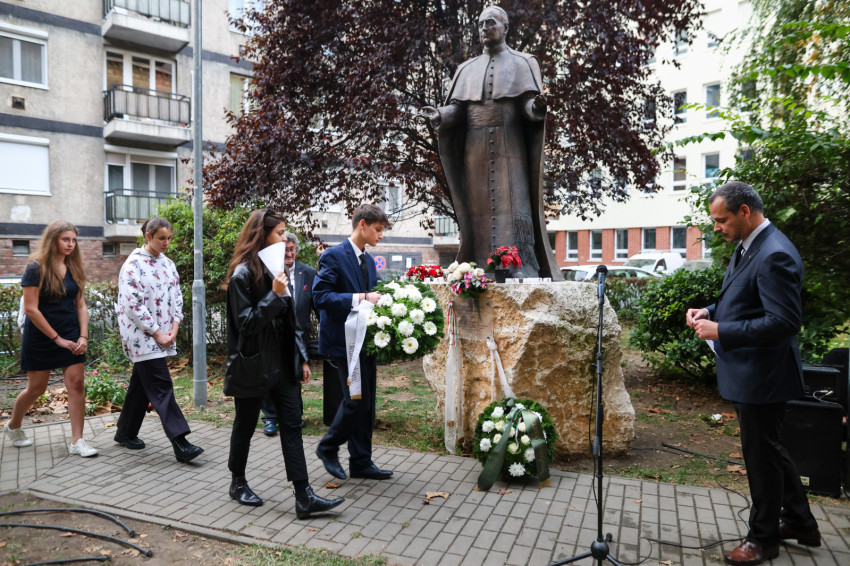 Végül Mindszenty József szobránál elhelyezték az emlékezés koszorúit.