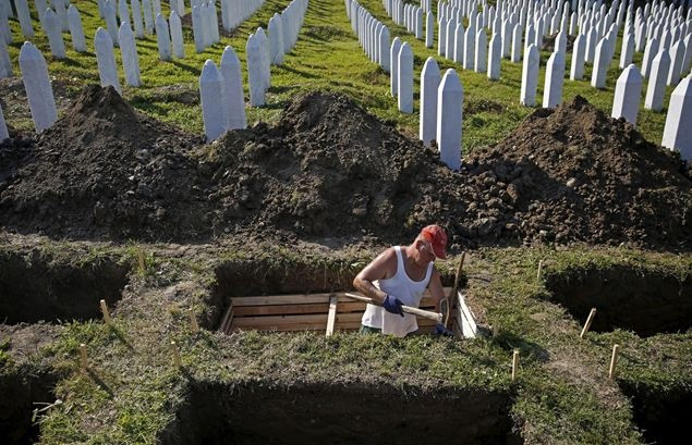 1995 júliusának elején a Ratko Mladić irányítása alatt álló szerb csapatok elfoglalták az ENSZ védelme alatt álló várost, ahonnan a jelen lévő holland békefenntartók távoztak. A július 11–16-ig tartó vérengzés során körülbelül 7 400 embert gyilkoltak meg pusztán azért, mert muzulmánok voltak. A holttesteket egy hatalmas közös sírba dobták be, maradványaik azonosítása a mai napig tart. Húsz év elteltével Srebrenica környékén még mindig vannak feltáratlan tömegsírok, több mint ezer áldozatot még nem találtak meg.