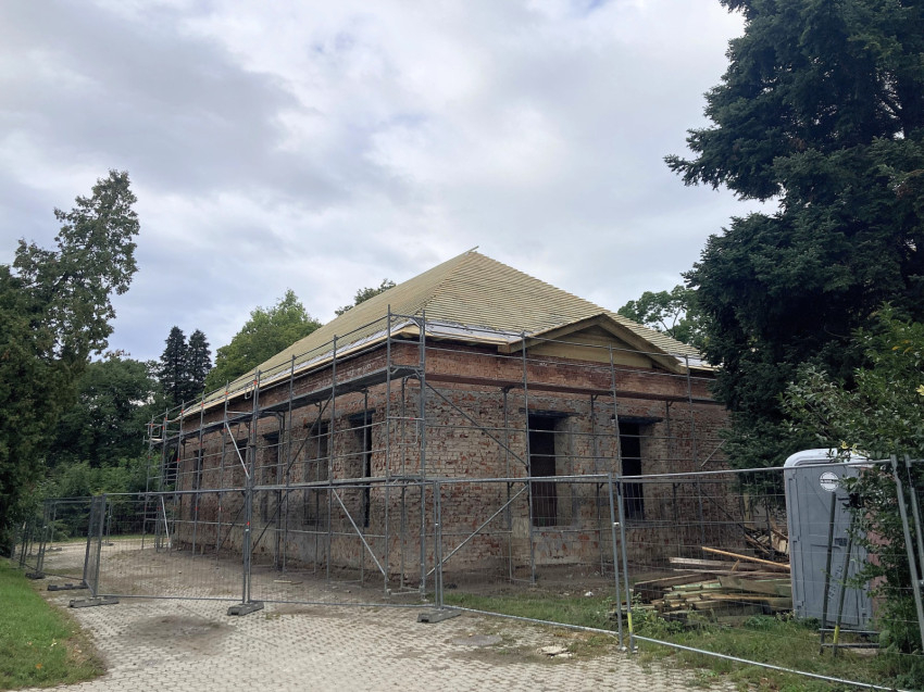 Az elmúlt hetekben elkezdték a tetőszerkezet ácsolását. Hagyományos, fagerendás tetőszerkezet készül. Már készítik az egyedi fa nyílászárókat, amelyek feltehetően ősz végén kerülnek a helyükre. A belső munkálatokat az Ybl-díjas Gutowski Róbert vezette budapesti iroda végzi majd el.