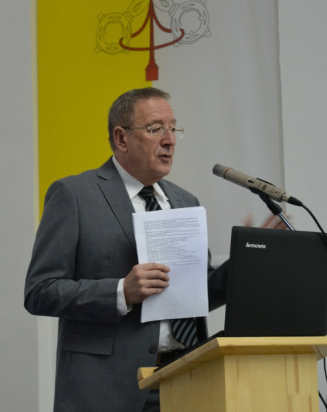 Zakar Péter egyetemi tanár, az SZTE rektorhelyettese, a GFF Keresztény Művelődéstörténeti Intézetének vezetője köszöntőjében elmondta, hogy Glattfelder Gyula csanádi püspök alakja Szent Gellérthez és a legnagyobb püspökökhöz hasonlítható, aki olyan korban élt, amikor biztosnak hitt világok omlottak össze. A tudományosan is képzett, ugyanakkor mély lelki életet élő főpásztor mégis hitelesen tudta képviselni a minden időben állandó keresztény értékeket. A konferencia legfontosabb célja, hogy Glattfelder és Foerk Ernő munkásságát, gondolatvilágát megismerve „olyan biztos alapot kapjunk, amely segít, hogy ebben a zűrzavaros világban otthon érezzük magunkat.”