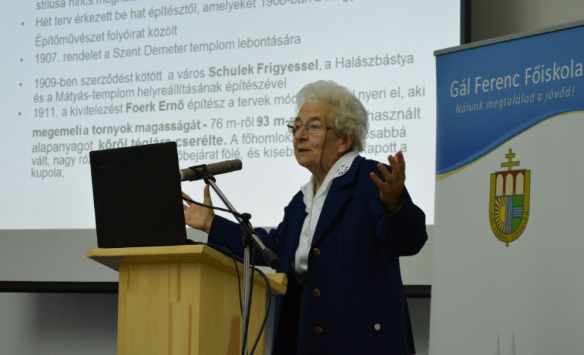 Prokopp Mária művészettörténész a dóm végleges terveit elkészítő és kivitelezési munkálataiban jelentős szerepet játszó Foerk Ernő munkásságát és a dóm művészeti stílusát értékelte. Hangsúlyozta, hogy nem szabad figyelmen kívül hagyni azt a fontos tényt, hogy olyan korban kezdték az építését, amikor a historizmus stílusa volt a meghatározó irányzat, a pályaművek is egytől egyig ezt a stílust követik. Prokopp Mária magyarázatot adott arra a jelenségre is, hogy mit jelentett ekkoriban a neogót stílus, amelyben a Mátyás-kori Magyarország öröksége rejlik. A Fogadalmi templom a Millennium hangulatában kezdett épülni, amikor a magyarság meg akarta mutatni nagyságát a világnak, és olyan korban fejeződött be az építése, amikor szintén bizonyítani akarjuk, hogy képesek vagyunk a feltámadásra. A historizmusból ered az az eklekticizmus, amit a templom díszítésében tapasztalhatunk. Glattfelder Gyula Szegedre költözését követően a kezébe vette a dóm építését, tudta, hogy neki kell a templom szellemiségét meghatároznia. A terveken az építésszel közösen úgy alakított, hogy kifejezze az ő küldetését. „A dóm a hit egész összefoglalása, egész ikonográfiai rendszert dolgoz ki Glattfelder a művészekkel együtt erre. Ismerjük meg Glattfelder szellemiségét, ma is ilyen pontos programok kellenének!” – zárta előadását Prokopp Mária.