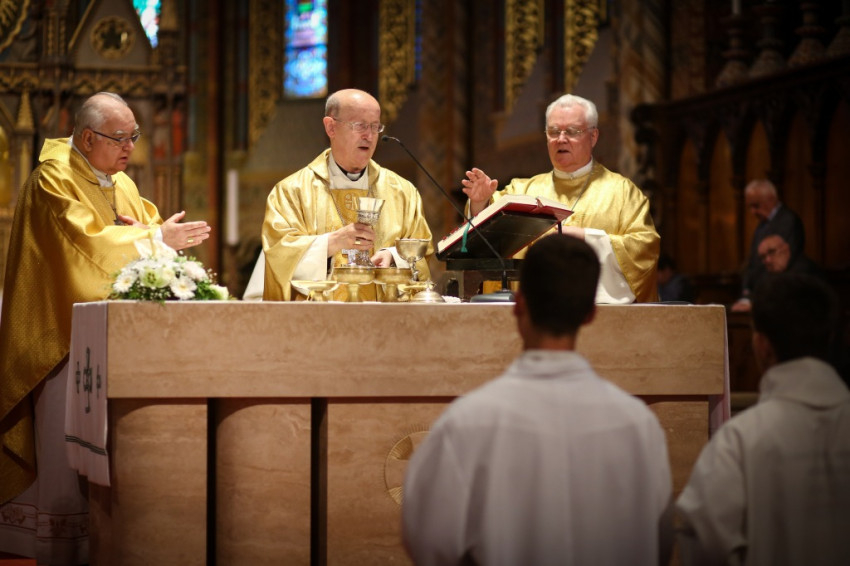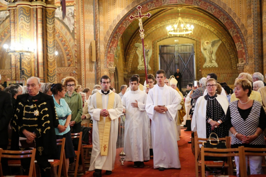 A szentmisén koncelebrált Alberto Bottari de Castello apostoli nuncius, Cserháti Ferenc esztergom-budapesti segédpüspök és Süllei László, a Mátyás-templom plébánosa.