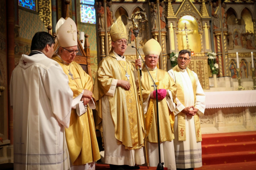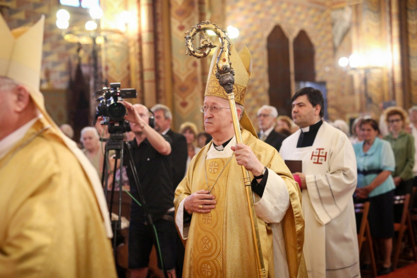Márfi Gyula érsek így folytatta: biztos vagyok abban, hogy a százötven évvel ezelőtti koronázás segítette a királyi párt abban, hogy a magyarországi egyházakkal együttműködve jól tudják betölteni vezetői tisztségüket. Mi, magyarok különösen is szeretettel gondolunk „Sisire”, a „magyarok királynéjára”, aki sokat tett azért, hogy a birodalom népei egymással és uralkodójukkal megbékélve élhessenek. Ezért is helyénvaló, hogy hálaadó istentisztelettel emlékezzünk a százötven évvel ezelőtti eseményre, amelyre a veszprémi érseki palotában egy nagyon szép kiállítás is emlékeztet, s egyúttal kérjük a jó Isten irgalmát az elhunyt uralkodói párral együtt magunkra, hazánkra, Ausztriára és egész Európára is.