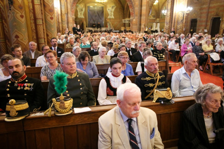 A szentmise záró áldása előtt Habsburg György és Soltész Miklós mondtak ünnepi beszédet. Habsburg György kiemelte, hogy a százötven évvel ezelőtti koronázási ünnepség megpecsételte a kiegyezést az osztrákok és a magyarok közt. Hozzátette: korábban a Habsburgok és a magyarok közt nem volt mindig felhőtlen a viszony, ám a kiegyezés sikeres volt, melyről példát vehetne a mai Európa: jó volna ma is egy európai kiegyezés.