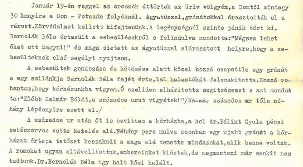 Ezen a frontszakaszon katonaorvosként dolgozott Dr. Bernolák Béla, akit két gyermeke és várandós felesége várt haza.