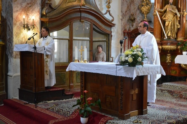 Székely János püspök Déri Péter esperes-plébánossal mutatott be szentmisét a Vas megyei Bérbaltaváron.