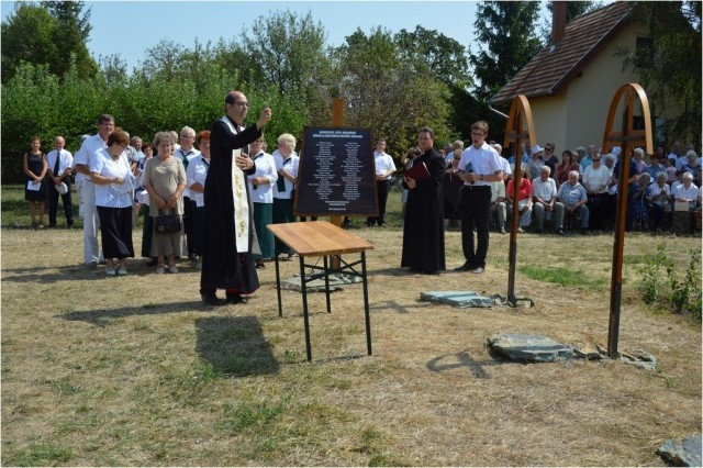 A szentmise után a megyéspüspök megáldotta a templom mellett felállított, a település egykori tanítóinak és papjainak nevét felsoroló, nekik emléket állító, valamint a falu népi szakrális nevezetességeit bemutató emlékoszlopokat.
