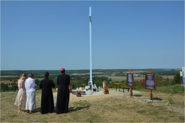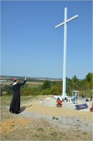 Ezt követően a népes közösség a falu fölötti hegyen folytatta az ünneplést, ahol fénykeresztet és keresztutat áldott meg Székely János püspök.
