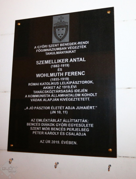 Az 1919-ben koholt vádak alapján kivégzett két győri bencés öregdiákra, Szemelliker Antal fülesi és Wohlmuth Ferenc császári plébánosra emlékeztek Győrben. A Czuczor Gergely Bencés Gimnázium falán elhelyezett emléktáblát Sárai-Szabó Kelemen OSB perjel, a győri bencés közösség elöljárója áldotta meg.