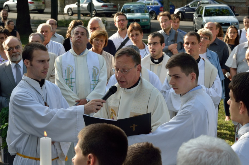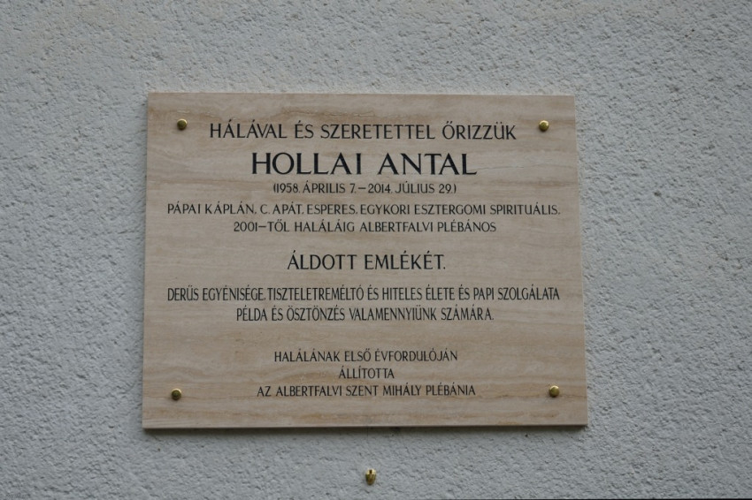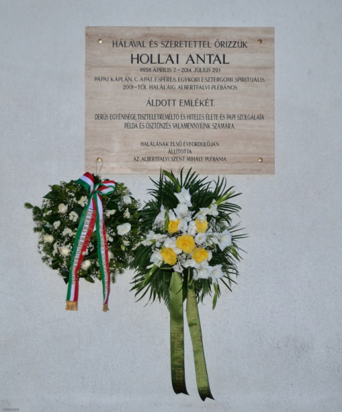 Az Albertfalvai Plébániatemplom előtti téren kezdődött a megemlékezés szerdán este. A templom külső falán, a főbejárat mellett elhelyezett emléktáblát a szentmise főcelebránsa, Pákozdi István pápai káplán, érseki tanácsos, egyetemi lelkész áldotta meg. A plébániai közösség nevében Bató András világi elnök, Újbuda Önkormányzata képviseletében pedig Molnár László alpolgármester helyezett el koszorút.