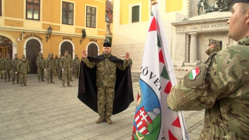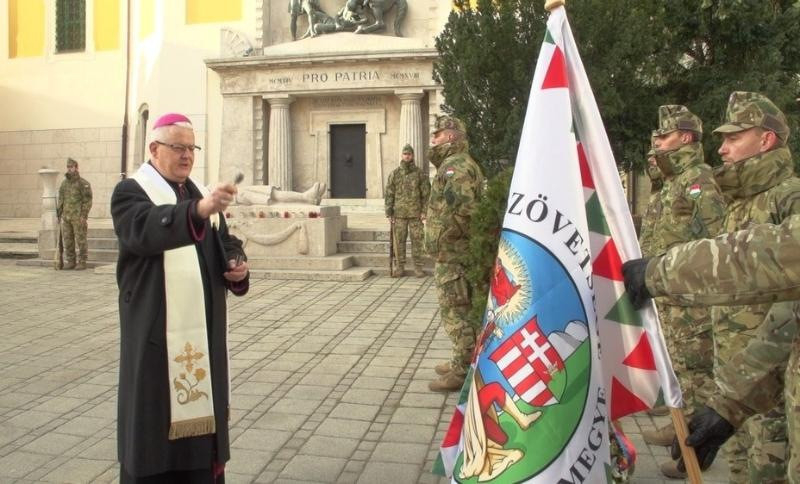 Az átadás után Spányi Antal székesfehérvári megyéspüspök megáldotta az egységzászlót, és áldást mondott a menetszázad tagjaira. Oláh Emil ezredes, a Protestáns Tábori Püspökség kiemelt vezető tábori lelkésze a menetelőkhöz a becsületességről mint katonai erényről szólt Wass Albert egy verse és bibliai idézetek alapján. Beszéde végén a lelkész imádkozott a résztvevőkért.