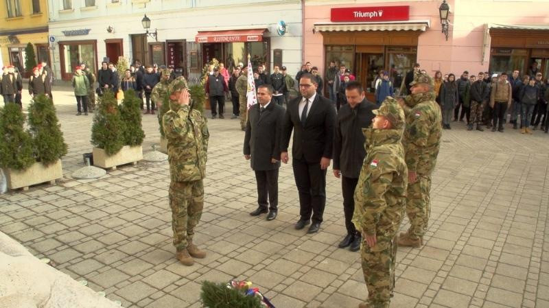 Az ünnepség végén koszorúzással tisztelegtek a harcban elesett katonák emléke előtt; Wilmek Tibor, a Fejér Megyei Közgyűlés alelnöke; Mészáros Attila alpolgármester; Dancs Norbert, a Székesfehérvári Járási Hivatal hivatalvezetője; Varga Péter Fejér megyei rendőrfőkapitány; valamint Kovács Zsolt városi rendőrkapitány helyeztek el koszorút a hősi emlékműnél.