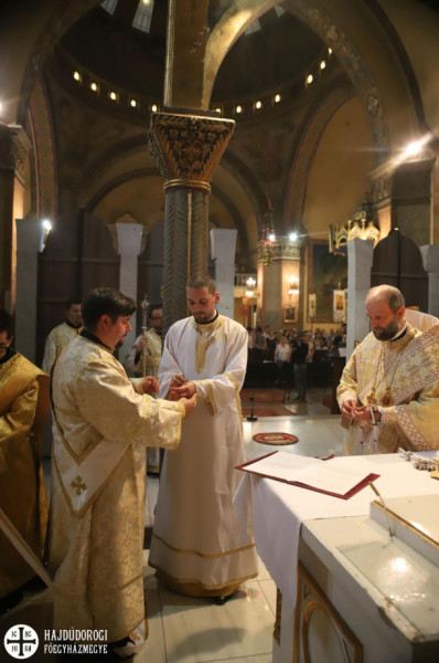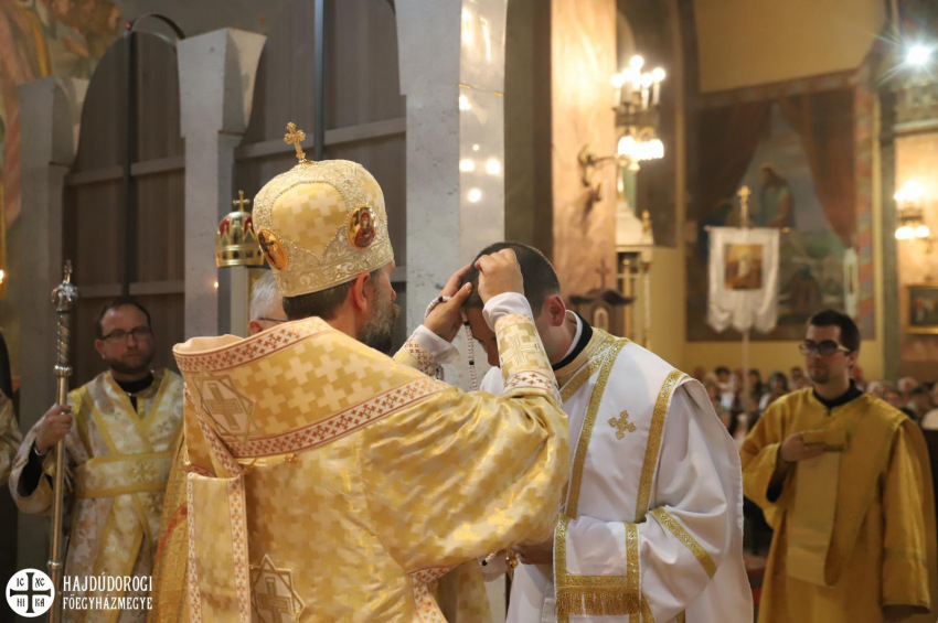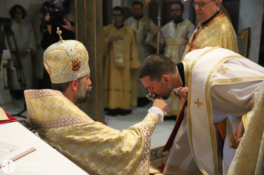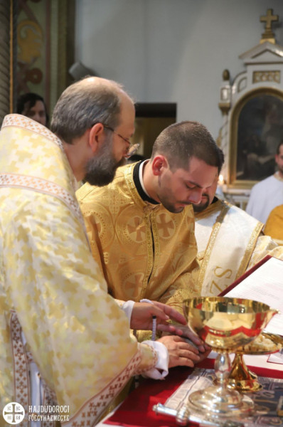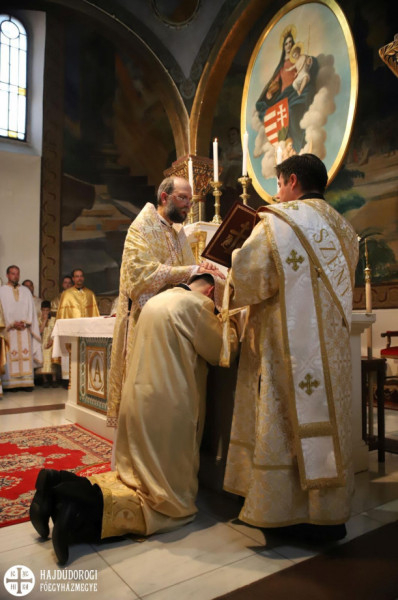 A szentelendő az oltárhoz érkezve térdet hajtott, és Kocsis Fülöp érsek-metropolita áldását kérte szolgálatára.