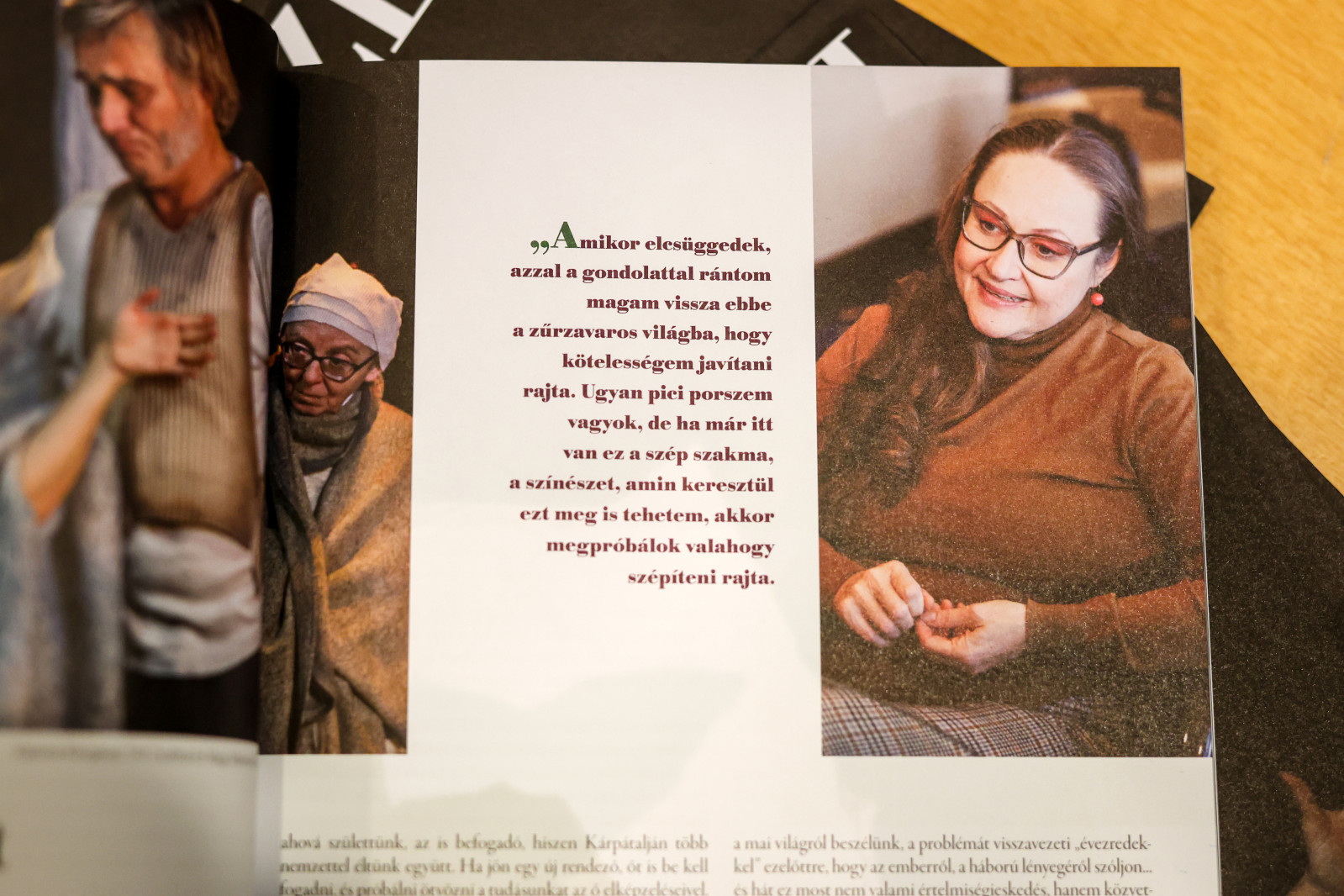 Ma már mindenki tudja, hogy az oda küldött pénz nagy része hogyan fordul vissza a fegyvergyárakat gazdagítva. Vajon meddig lehet még hazudni az embereknek? Az jár a fejemben, hogy egy kollégával csinálunk egy előadást, amit elvinnénk Kárpátaljára. Másfél éve nem voltam otthon, a férfiak már két éve. Nekem itt semmi bajom, élhetem az életem; de haza szeretnénk menni. Kötelességemnek érzem a kiállást értük és velük. A nővérem most is ott lakik a családjával, innen próbáljuk meg anyagilag segíteni őket. A beregszászi színház bajosan, de működik; jelenleg a lányok tartják a frontot. Még nem tudjuk, mi lesz a nyelvtörvénnyel, az iskoláinkkal. Nagyon sok a kérdés.