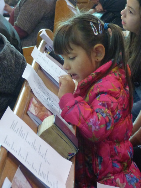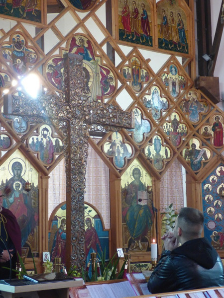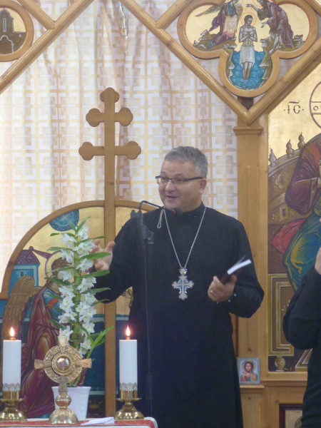A délelőtt folyamán gyermekeikkel együtt környékbeli nevelőszülők érkeztek a templomba, akik a Szent Zotikosz Gyermekvédelmi Központ dolgozóinak segítségével végzik munkájukat. A gyerekeknek Trescsula László és Tyukodi Attila atya tartott imádsággal elkezdett játékos hittanórát a keresztről.