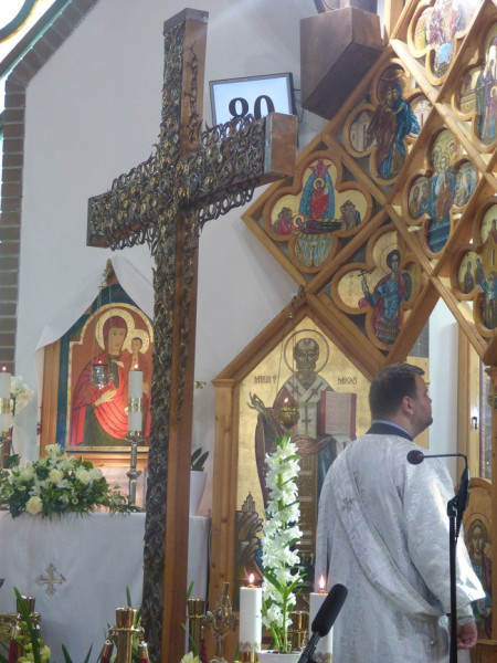 „Az előttünk lévő tölgyfa kereszt is egyszerre emlékeztet minket Jézus Krisztus fájdalmas kereszthalálának eseményére, de emlékeztet minket az élet fájára, melyet ugyan az édenkertben elveszítettek őseink, de újra megtalálhatjuk a Golgotán. A kereszt a halál fölszámolásának is biztos jele” – mondta a hierarcha, majd ezt alátámasztva védőszentje, Nagy Szent Atanáz írásából idézett: „Amint azonban az Üdvözítő feltámasztotta testét, már nem félelmetes a halál, és mindaz, aki Krisztusban hisz, semmibe veszi, inkább vállalja a halált, semmint hogy megtagadja Krisztus hitét.” Tették ezt azok a hitvallók, szentek és vértanúk is, kiknek ereklyéi most a kereszten láthatók; „a kereszt erősítette meg őket, a kereszténység diadalmas oldalát elevenítik föl számunkra”.