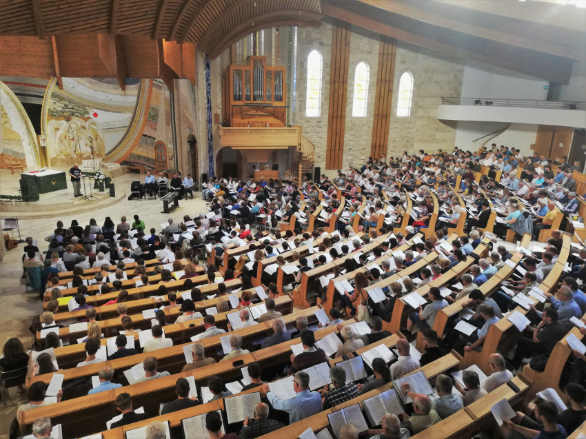 – A 2020-ról a következő évre halasztott kongresszusra való felkészülés nagy feladatot rótt a kórusokra és karnagyaikra, hiszen a járvány miatt nem lehetett próbákat tartani. Sokan vállalták, hogy online módon, szólamonként, hősies erőfeszítéssel tanítják meg a hatalmas anyagot. A művek kottáit egy tárhelyről lehetett letölteni. Különböző nehézségi szinteket állapítottunk meg, így minden kórus a lehetőségeihez mérten vehetett részt az éneklésben. Amikor enyhültek a járvány miatti korlátozások, komoly feladatot jelentett a próbák megszervezése a nagy létszámú kórusokkal. A zárómise nagy összkarát három részre osztottuk, és Gardagréten tartottunk egy-egy bő négy órás próbát. Már ez a közös éneklés is örömünneppé varázsolta az együttlétünket. Ugyanitt próbáltunk a gyermekkórusokkal is.