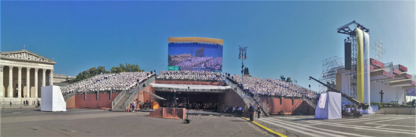 És ekkor megtapasztaltuk a „rendező” Szentlélek vezetését. Liszt művéből éppen abban a pillanatban hangzott fel a felkiáltás: „Tu es Petrus”, amikor a pápamobil megérkezett a Hősök terére;