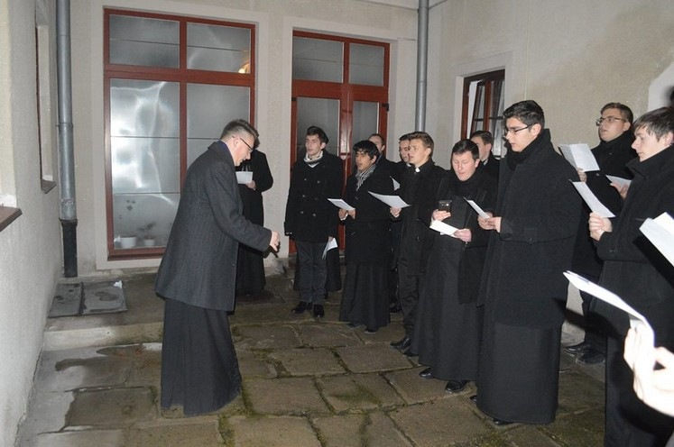 A Rorate cæli eléneklésével a szeminárium tizenkilenc önkéntes növendéke járta be hajnali négytől a papnevelő intézetet, a szemináriumi elöljárók, tanárok, valamint Jakubinyi György gyulafehérvári érsek otthonát, ajtajukban énekkel köszöntve őket.
