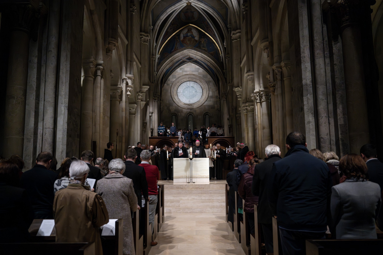 A bencés szerzetesközösség tagjai mellett a testvéregyházak lelkipásztoraival, katolikus hívekkel és a Pannonhalmi Bencés Gimnázium diákjaival telt meg a pannonhalmi Szent Márton-bazilika március 5-én, hamvazószerdán.