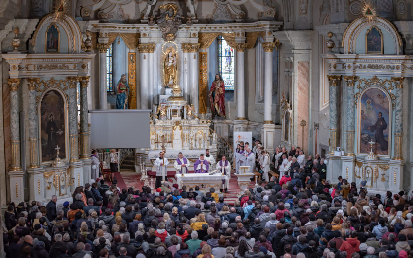 Az ünnepi szentmisét 18 órától Urbán Erik, az Erdélyi Ferences Rendtartomány provinciálisa mutatta be. Prédikációjában kiemelte: jó lenne, ha olyan füleink lennének, mint azoknak a katonáknak, akiket elküldtek, hogy elfogják Jézust; ők a maguk módján hitvallást tettek, hiszen nemcsak hallották, amit Jézus mondott, hanem meg is értették. Ők maguk mondták: „Ember még így nem beszélt.”